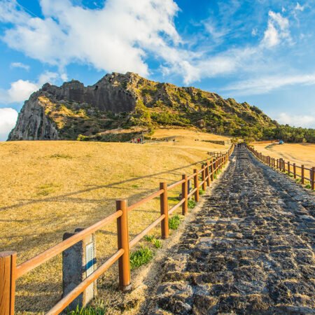 Explore lively markets in Busan, the peaceful gardens of Ulsan, ancient treasures in Gyeongju, and the alpine beauty of Pyeongchang. Conclude your adventure on Jeju Island, where volcanic cliffs, waterfalls, and serene walking trails await.